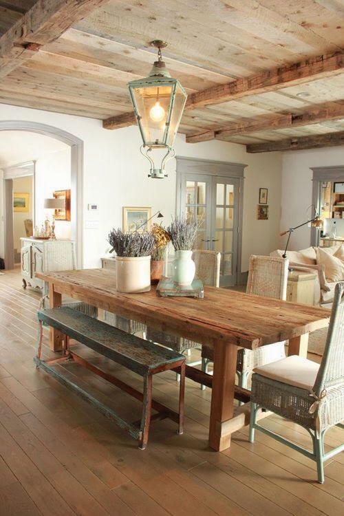 It seems like gone are the days of making a production out of dinner time but I do love the unique style everyone is using to assemble a dining set. Apparently anything goes when it comes to tables and chairs. Benches, crates and mix-matched metal and wood chairs are the new farmhouse look and I love it!