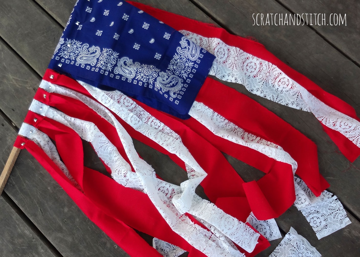 Courtesy of Flamingo Toes. http://www.flamingotoes.com/2015/06/rustic-ribbon-and-lace-usa-flag/