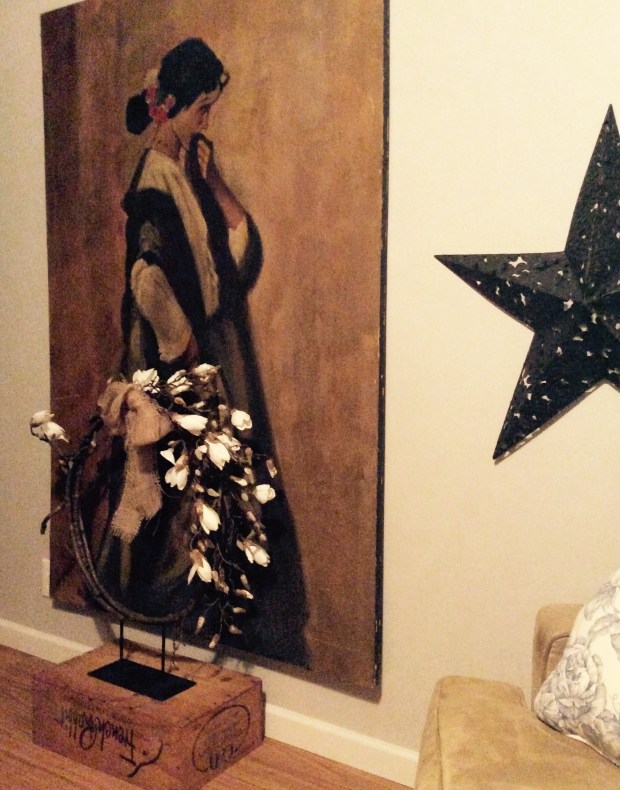 When I finally took a giant leap and purchased a home I made dang sure there would be a wall just for her, along with a bedroom for my son of course. So there she hangs quietly and modestly in my quaint little living room to remind me now that I am home.